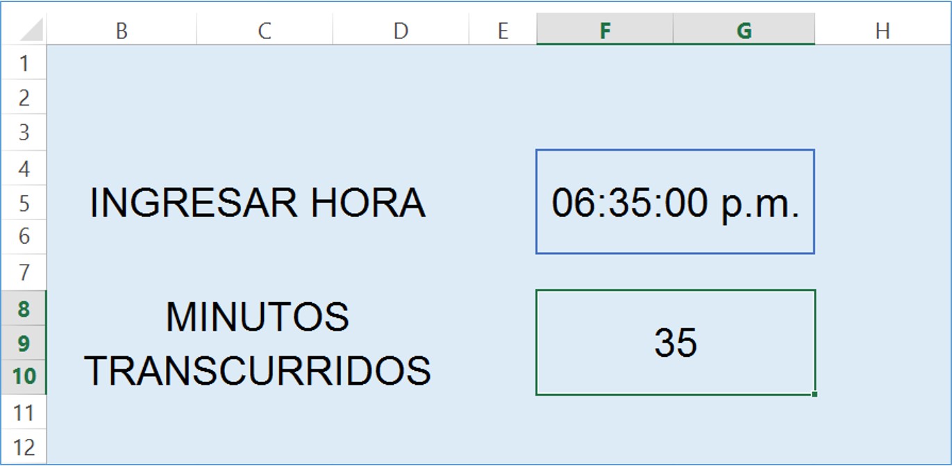 2) Escribir en el campo "INGRESAR HORA" que se encuentra ubicado en la celda F4.