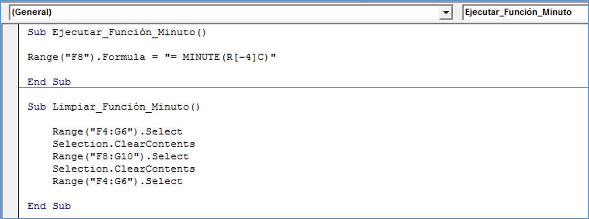 Ejemplo de la Función Minuto usando Macros